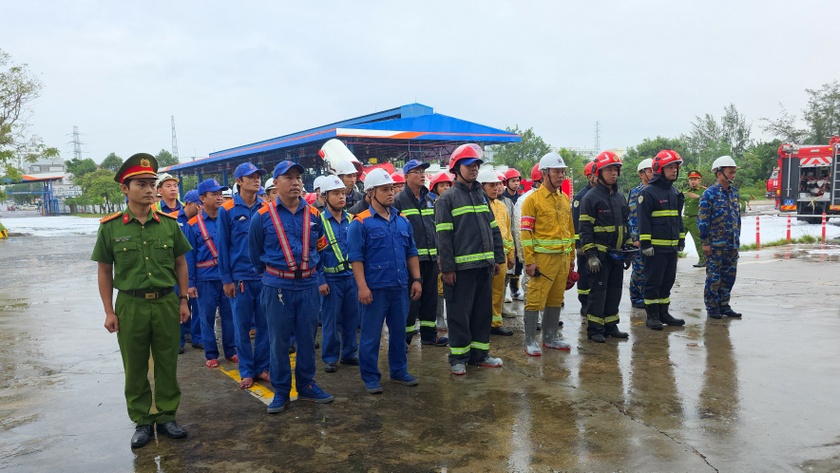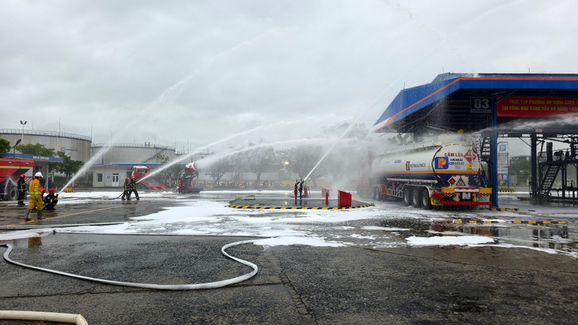 Buổi thực tập có sự tham dự và chỉ đạo của Trung tá Lê Văn Lưu – đại diện lãnh đạo Phòng Cảnh sát PCCC & CNCH; Thượng tá Nguyễn Đức Hồng – đại diện Trung tâm đảm bảo kỹ thuật; cùng đại diện Ban Giám đốc Công ty - PGĐ Võ Đình Đức và lãnh đạo Tổng kho Xăng dầu Đà Nẵng.