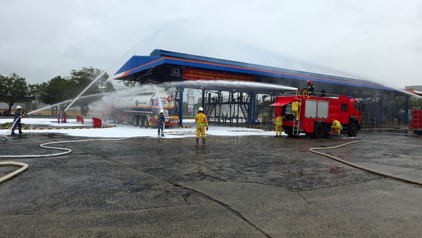 Theo kịch bản, vào chiều 20/11 xảy ra sự cố cháy tại khu vực bến xuất ô tô xi téc, nguyên nhân do vi phạm quy định an toàn khi cấp phát xăng dầu. Khi phát hiện đám cháy, lực lượng tại chỗ đã nhanh chóng báo động, sử dụng bình chữa cháy để xử lý ban đầu và tổ chức cứu nạn đối với một công nhân bị ngã chấn thương trong quá trình hỗ trợ.